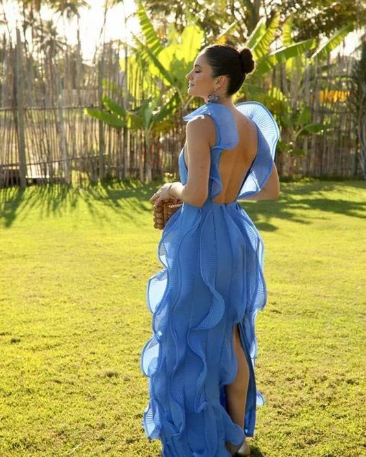 Quyihu Prom Clothing Unique A-Line Ruffles Prom Dresses Backless Evening Party Dress