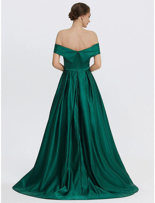 A-Line Evening Gown Elegant Dress Formal Prom Floor Length Sleeveless Sweetheart Satin with Slit