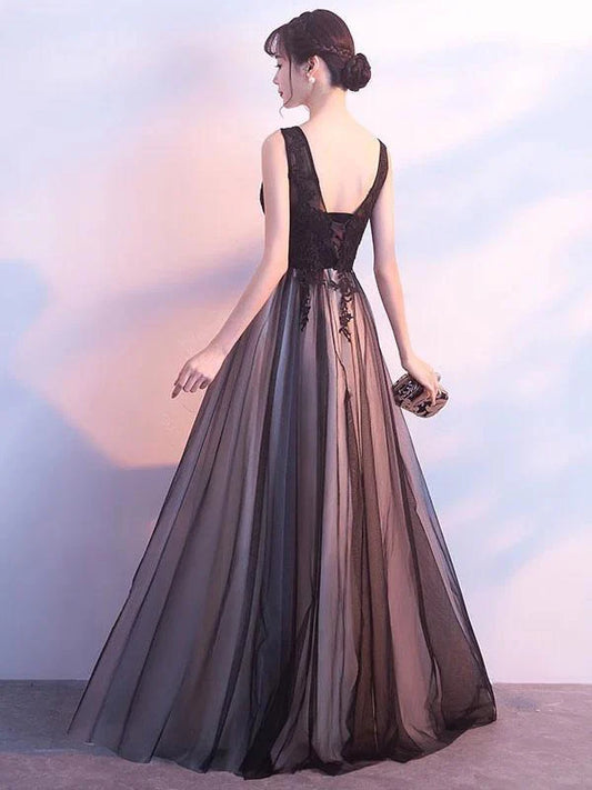 Romantic A-Line Scoop Neck Sleeveless Lace Chiffon Prom Dress