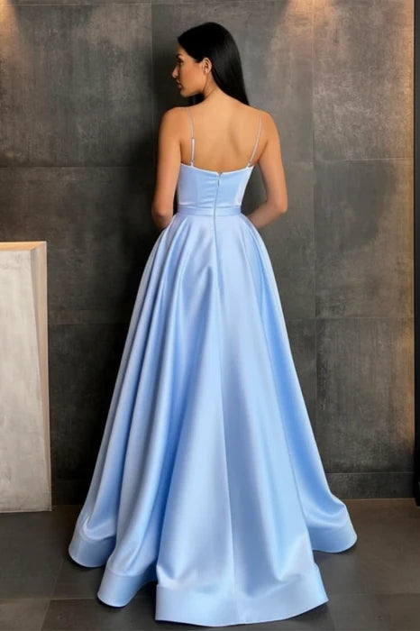 Glamorous A-Line Strapless Satin Royal Blue Floor-Length Prom Dress