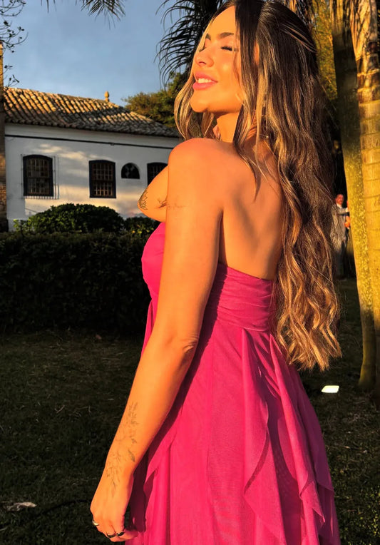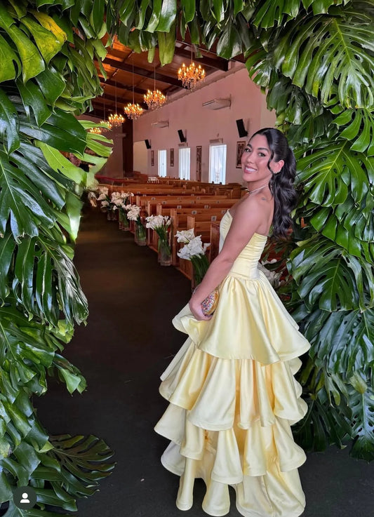 Quyihu Prom Clothing Unique A-Line Ruffles Prom Dresses Backless Evening Party Dress