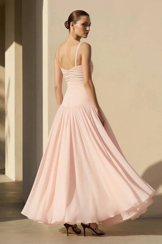 Elegant Spaghetti Strap Cutout Pleated Chiffon Maxi Dress