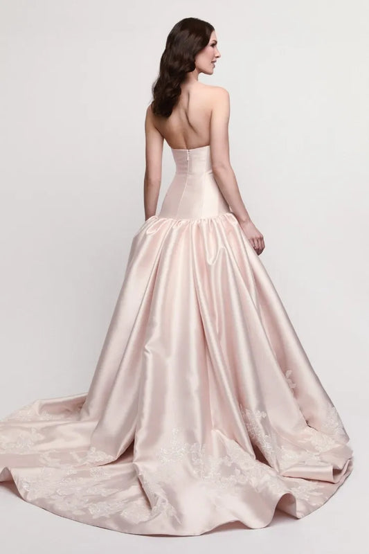 Elegant Strapless Satin Embroidered Drop Waist Ball Gown