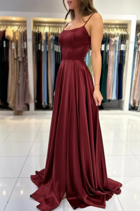 Elegant A-Line Spaghetti Straps Satin Floor-Length Prom Dress