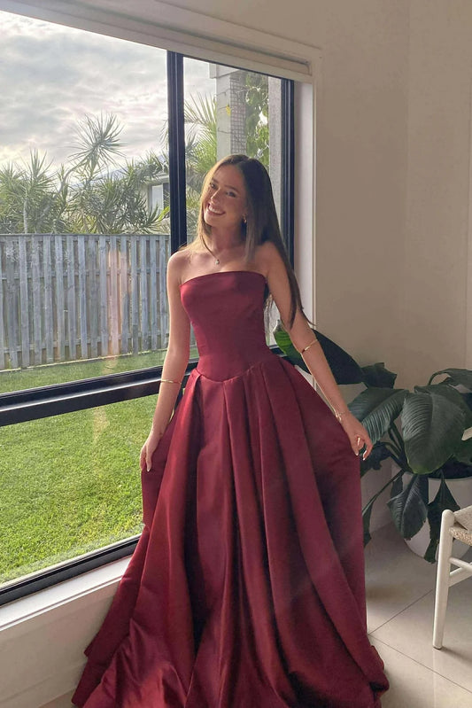 Stylish Sheath Strapless Sleeveless Satin High Slit Floor-Length Prom Dress
