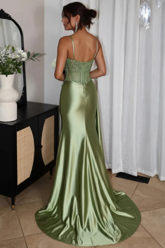 Glamorous Mermaid Spaghetti Straps Beaded Floor-Length Prom Dress