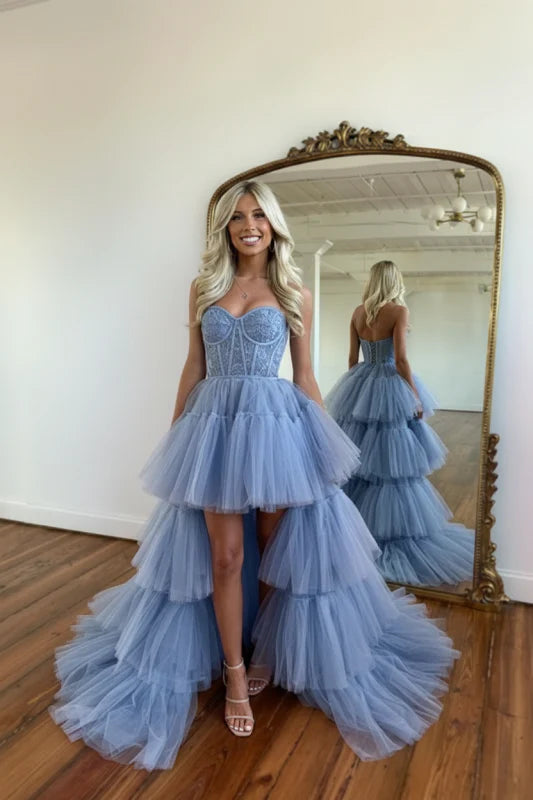Romantic Strapless Sleeveless Tulle High-Low Party Dress
