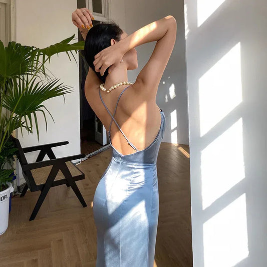 Pretty Mermaid Halter Neck Sleeveless Backless Floor-Length Prom Dress