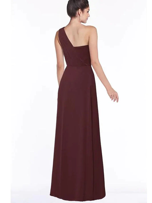 A-Line One Shoulder Floor Length Chiffon Bridesmaid Dress with Ruching
