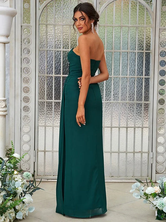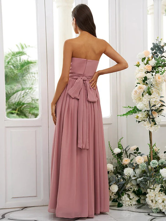 A-Line Princess Chiffon Ruffles Strapless Sleeveless Floor-Length Bridesmaid Dresses