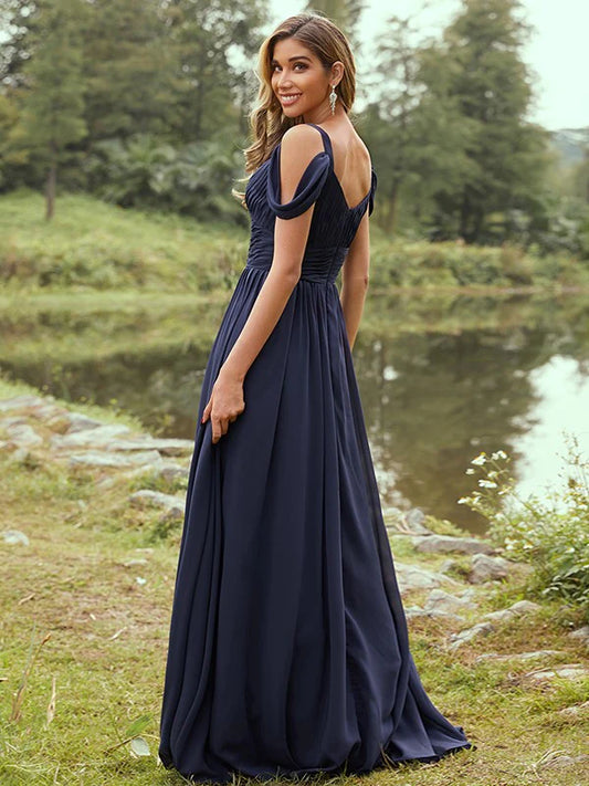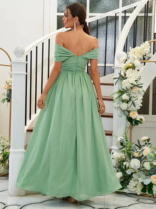 A-Line Princess Chiffon Ruffles Off-the-Shoulder Sleeveless Floor-Length Bridesmaid Dresses