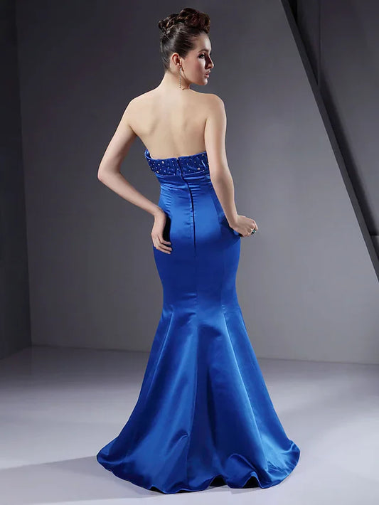 Strapless Floor Length Satin Bridesmaid Dress with Beading Draping