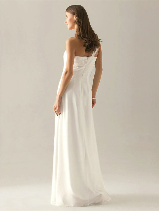Sheath / Column Bridesmaid Dress One Shoulder Sleeveless Elegant Floor Length Chiffon with Bow(s) / Pleats / Ruched