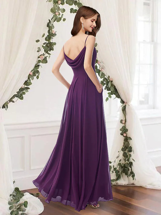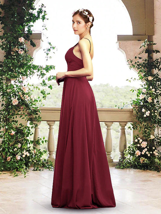 A-Line Bridesmaid Dress V Neck / Spaghetti Strap Sleeveless Elegant Floor Length Chiffon with Pleats