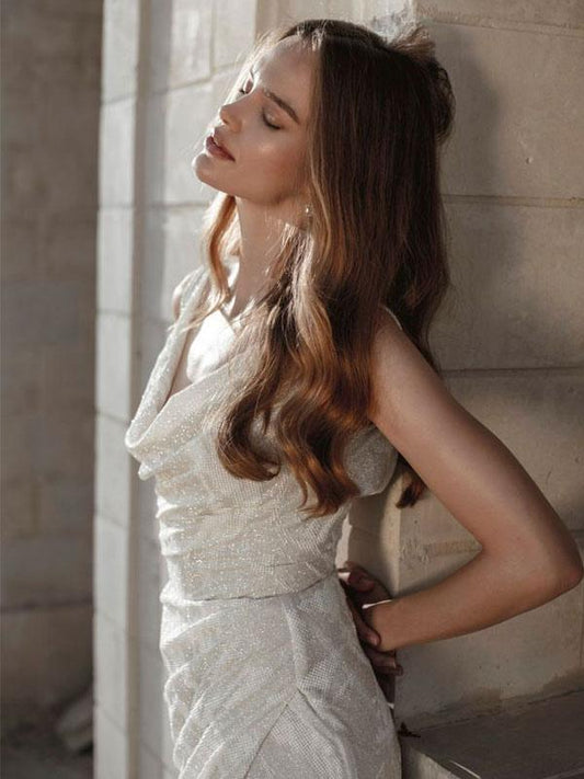 Mermaid V-Neck With Train Sleeveless Backless Split Front Formal Evening Dresses Party Dresses