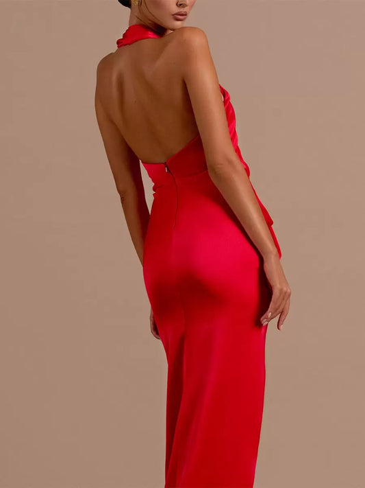Mermaid Halter With Train Sleeveless Backless Satin Formal Evening Dresses