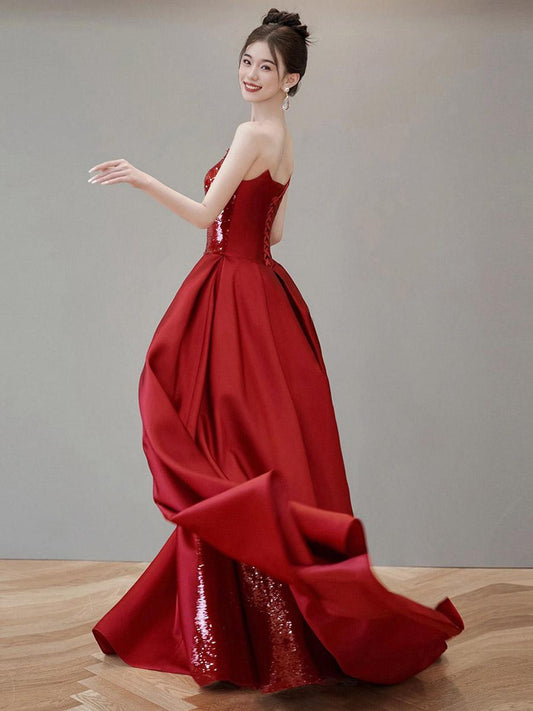 A-Line Strapless Sequined Court Train Sequins Evening Dresses