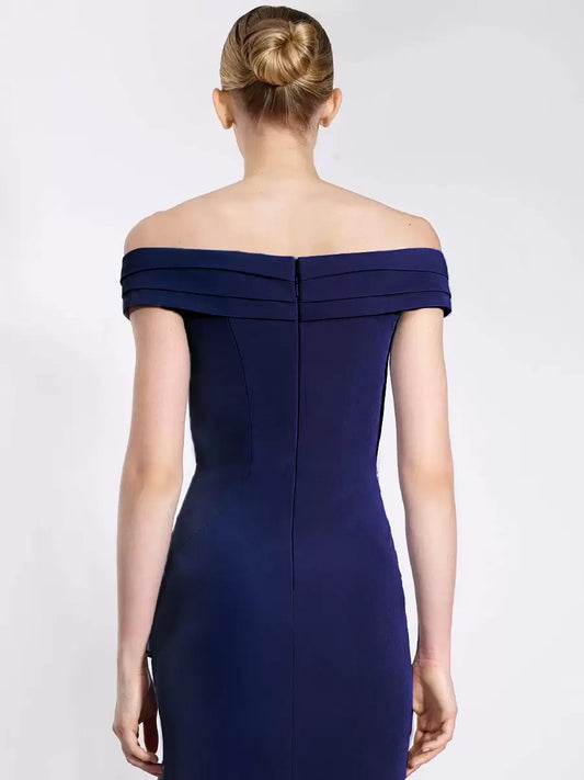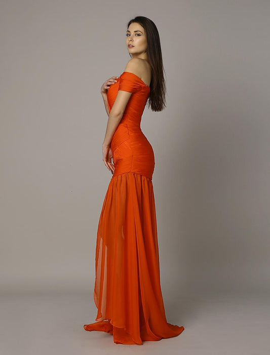 Red Off the Shoulder Ruched Split Chiffon Mermaid Evening Dresses With Sweep Train