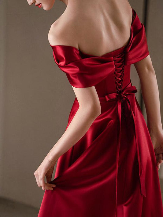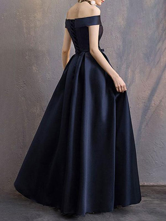A-Line Bateau Neck Satin Fabric Floor-Length Formal Evening Dress