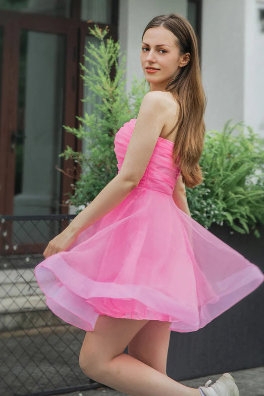 Cute A-Line Light Pink Strapless Tulle Homecoming Dress