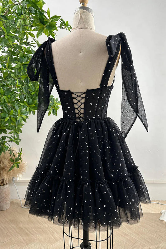 A-Line Princess Tulle Glitter Black Stars Corset Homecoming Dress