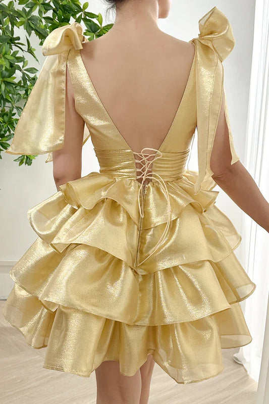 Shining A-Line Deep V-Neck Sleeveless Lace Up Short-Mini Homecoming Dress