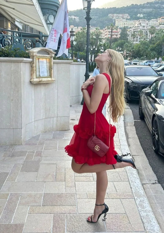 Fashion A-Line Spaghetti Straps Sleeveless Backless Tulle Short-Mini Homecoming Dress