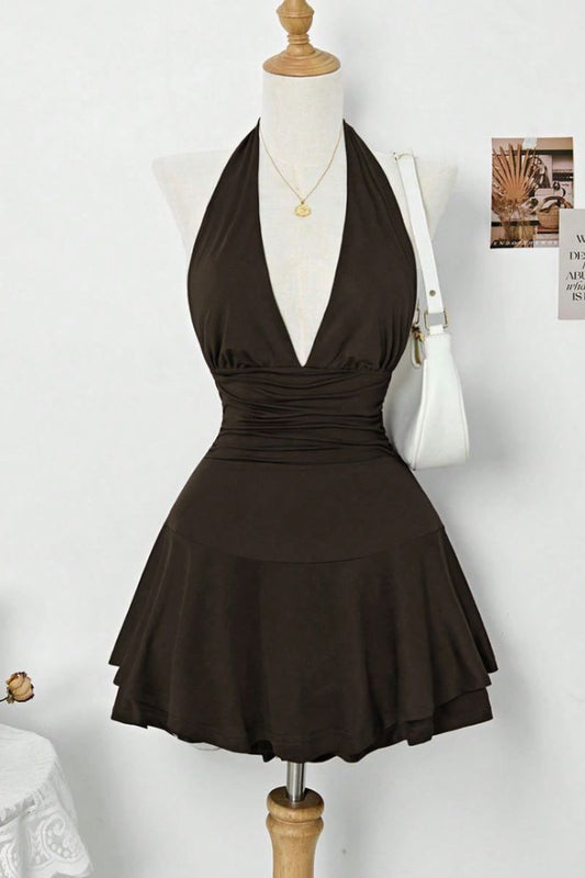 Solid Color A-Line Halter-Neck Sleeveless Lace Up Short-Mini Homecoming Dress