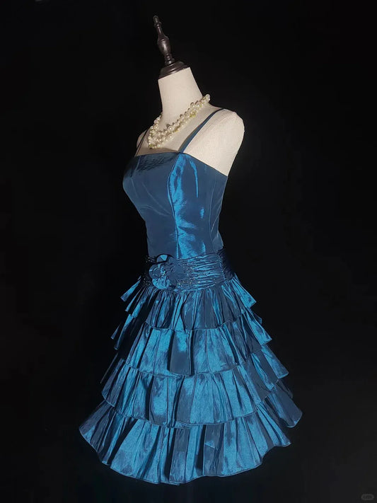 Fashion A-Line Spaghetti Straps Sleeveless Pleated Satin Short-Mini Homecoming Dress