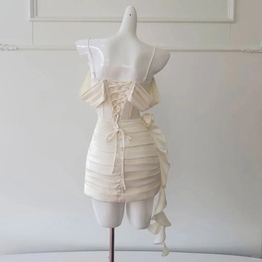 Exquisite A-line Off-Shoulder Sleeveless Pleated Satin Short-Mini Homecoming Dress