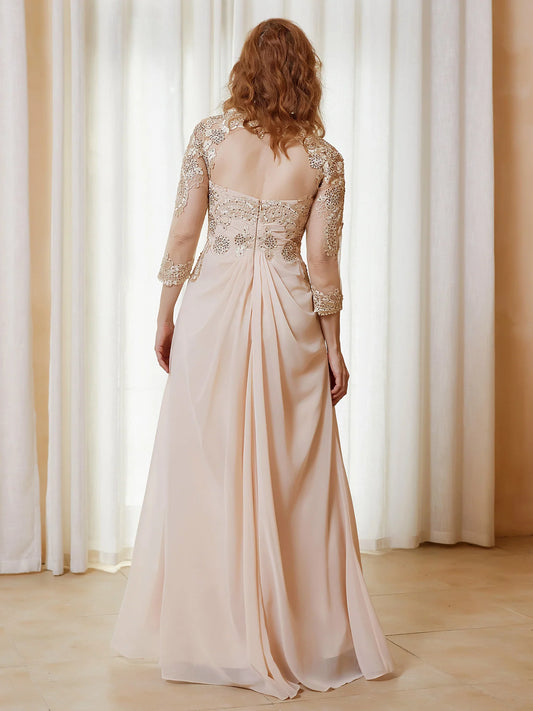 Chiffon Appliqued Dress with Open Back Champagne Chiffon Mother of the Bride Dresse