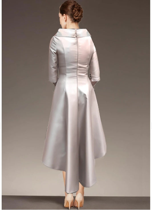 Mother of the Bride Wedding Guest Dress Elegant Satin 3/4 Sleeve with Gathered