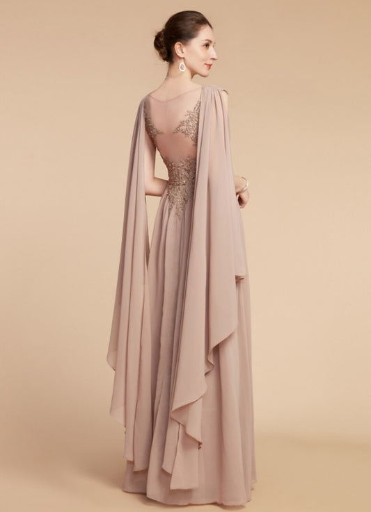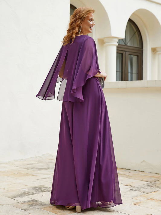 A-line Jewel-Neck Chiffon Mother of the Bride Dresse With Long Cape-Dusty Rose