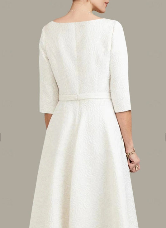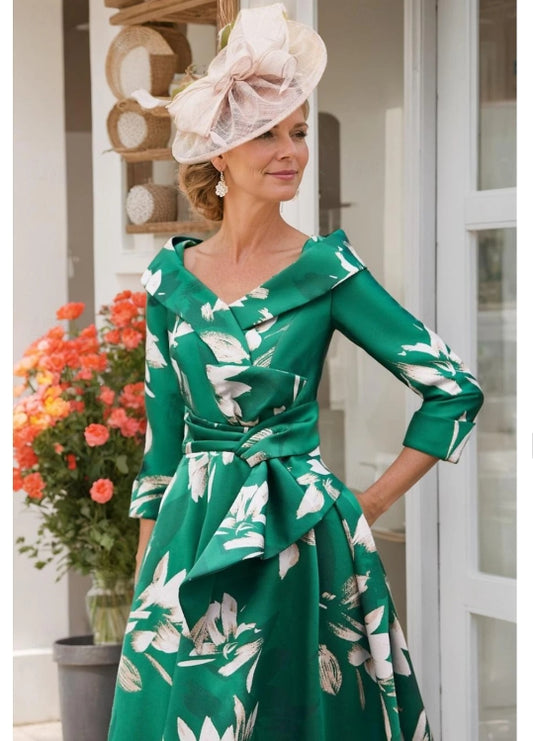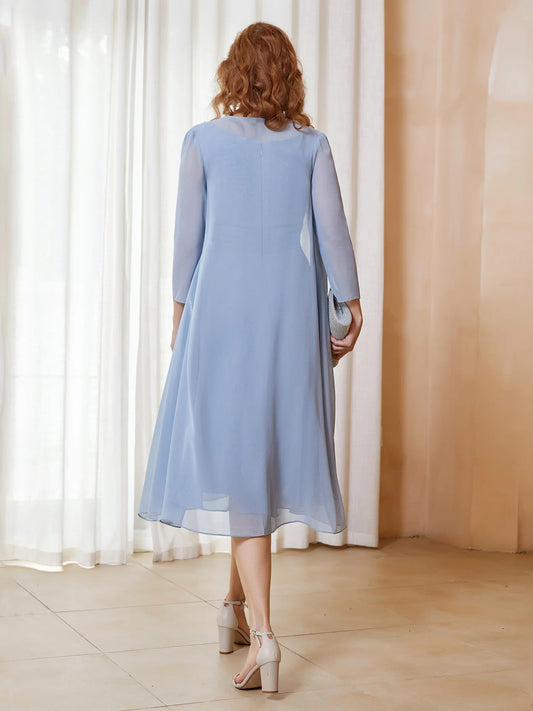 A-Line Mother of the Bride Wedding Guest Dress Asymmetrical V-Neck Midi Polyester 3/4 Sleeve Dress