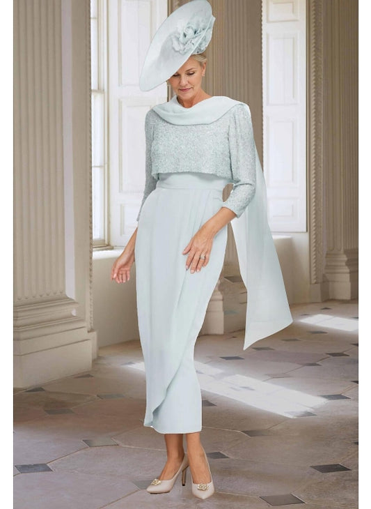 Sheath / Column Mother of the Bride Dress Elegant Jewel Chiffon 3/4 Sleeve