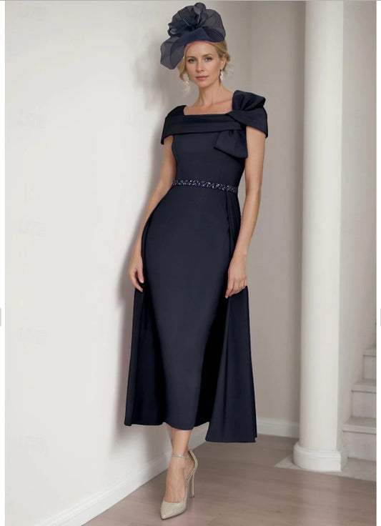 Sheath / Column Formal Mother of the Bride Wedding Guest Dress Elegant Square Neckline with Bow(s) Ruffle Solid Color
