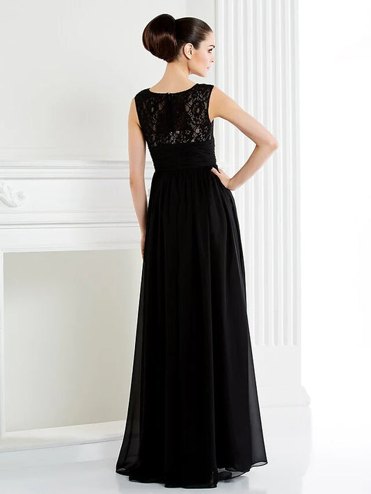 A-Line Mother of the Bride Dress Scoop Neck Floor Length Chiffon Lace Sleeveless with Lace