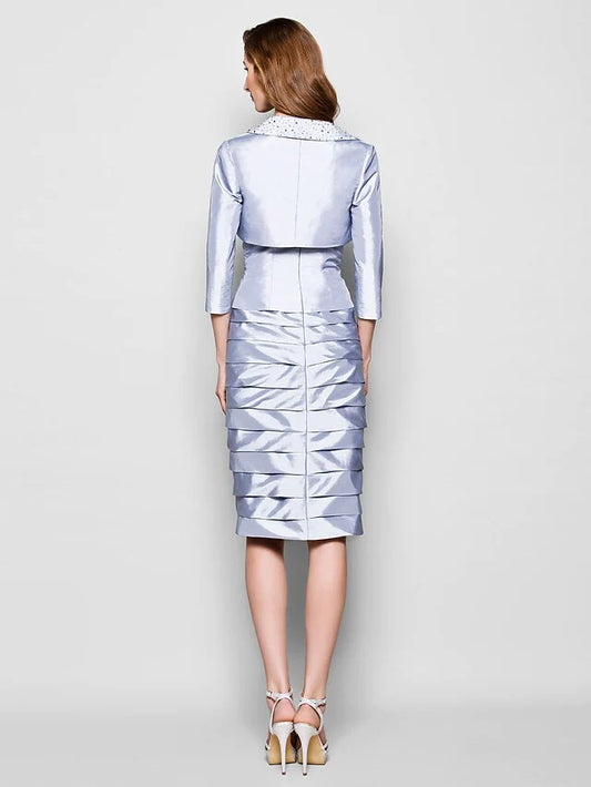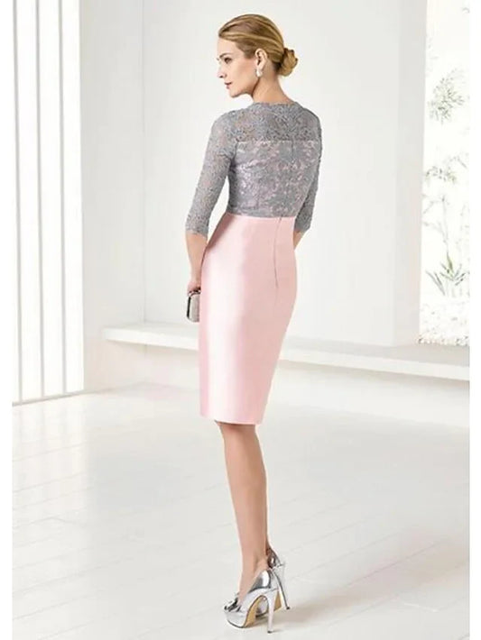 Mother of the Bride Dress Wrap Included Jewel Neck Knee Length Lace Satin 3/4 Length Sleeve with Lace
