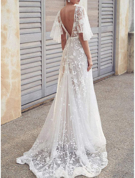 White Long Dress Backless Sexy V Neck Short Sleeve Party Dress Prom Dress