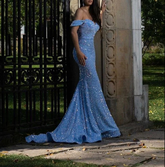 Off-the-Shoulder Long Evening Dress Mermaid Sequins Party Gowns