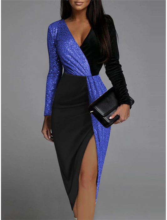 Party Dress Cocktail Dress Bodycon Split V Neck Long Sleeve Midi Dress Christmas Spring Winter