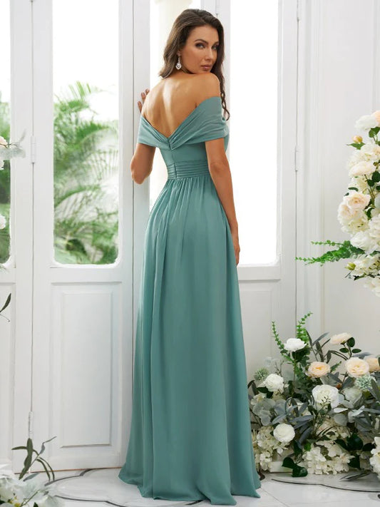 A-Line Princess Chiffon Ruched Off-the-Shoulder Sleeveless Floor-Length Bridesmaid Dresses