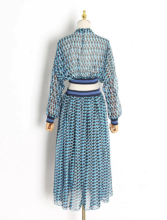 A-Line Party Dresses Flying Dress Dress Holiday Ankle Length Long Sleeve High Neck Chiffon with Print