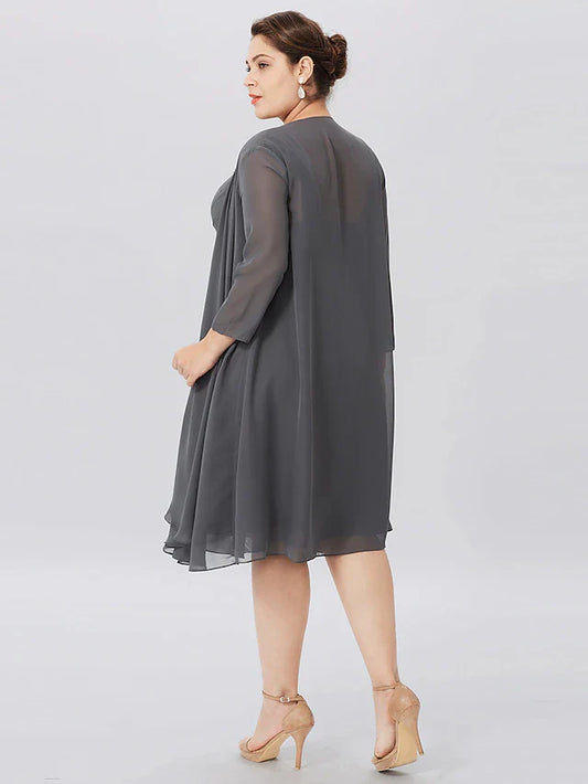 A-Line Mother of the Bride Dress Formal Plus Size Elegant Straps Knee Length Chiffon Sleeveless with Criss Cross Pleats