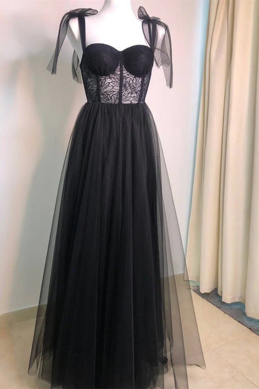 Formal Wear Dresses Off Shoulder Black Lace Corset Tulle A-line Long Prom Dress Stores With Prom Dresses