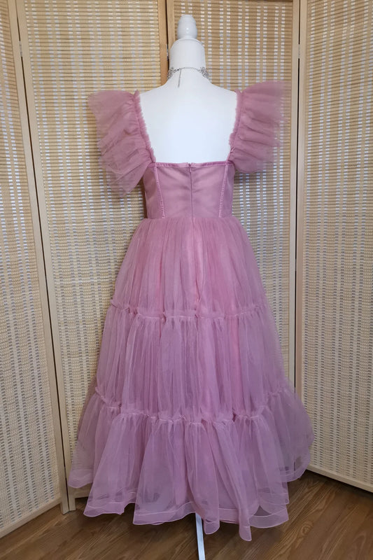 Formal Wear Dresses A-line Flare Sleeves Rose Pink Corset Princess Dress Prom Dress Stores With Prom Dresses
