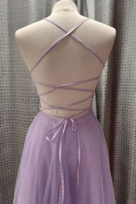 Formal Wear Dresses Sleeveless Spaghetti Straps Lavender Tulle Pleated Prom Dress Stores With Prom Dresses