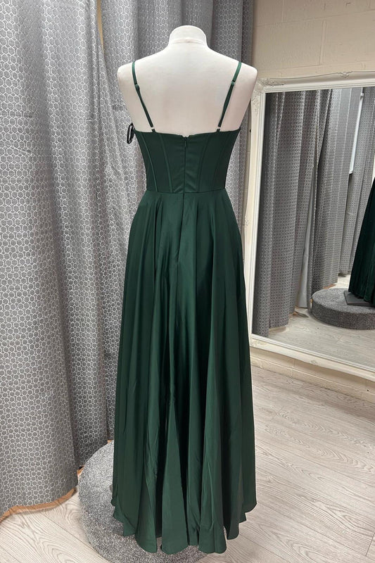 Formal Wear Dresses Spaghetti Straps Dark Green Cowl Neck A-line Formal Dress Prom Dress Stores With Prom Dresses