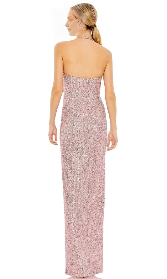Formal Women's Dresses Halter Neck Sequined Evening Dress With Slit Floor Length Prom Dress / Stores With Prom Dresses