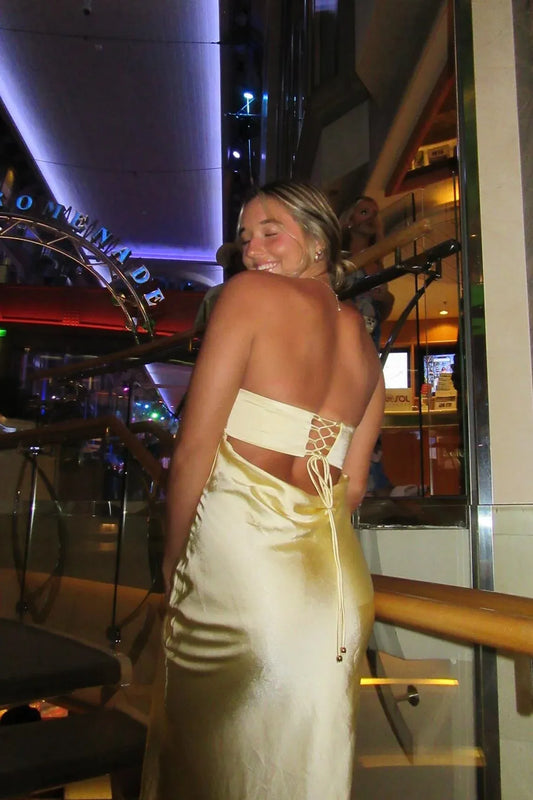 Glamorous Princess Strapless Sleeveless Satin Ruched Floor-Length Prom Dress